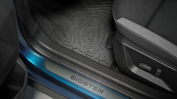 Të prodhuara me 20% material të ricikluar dhe të lehta për t’u mirëmbajtur. Mbrojnë plotësisht dyshemenë e kabinës së pasagjerëve. Të dizajnuara posaçërisht për automjetin tuaj, fiksohen me dy kapëse sigurie dhe nuk pengojnë pedalet. Personalizoni dhe mbroni pikat e hyrjes së automjetit tuaj me stil. Finalizimet dalluese në të zezë me shkëlqim, i japin Bigster-it një prekje ekskluziviteti.